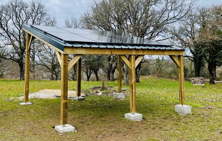 Ce carport en bois intègre une installation photovoltaïque de 4 kW, permettant de maximiser l’autoconsommation et de réduire la facture énergétique, tout en apportant un espace de stationnement couvert et élégant.